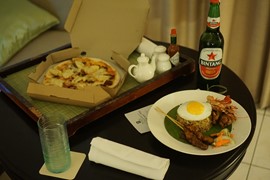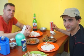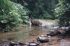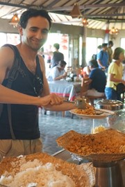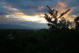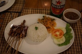 After a very rigorous hike, we reached our campsite for the night – a nice secluded area next to a jungle stream where all the tourists took a much needed dip to cool off (and clean up! We were all smelling pretty ripe). After that, we relaxed until sunset when our fabulous jungle chef, Alan, served us a multi-course Indonesian feast! Including our new favorite: Chicken Rendang!