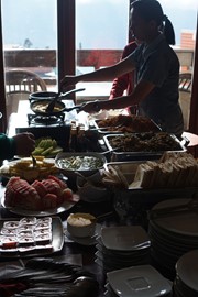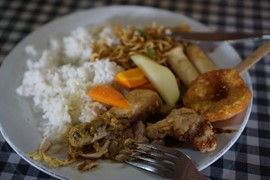 Eating well in the jungle! Lunch on the hilltop (a fried egg & rice wrapped in banana leaves – eaten too quickly for a picture), followed by a huge dinner spread! Selamat makan!