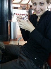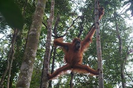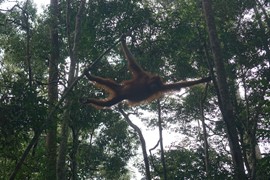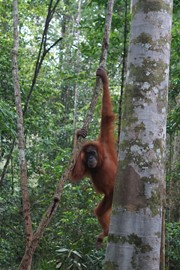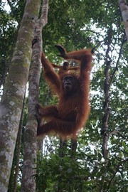 A curious orangutan named Juney and her baby came over to our group as we were finishing our lunch