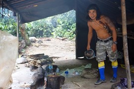 Leli getting some tea started in the bush kitchen, next door to our platform tents