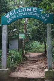 Gunung Leuser National Park is home to both wild and semi-wild orangutans (beneficiaries of the former rehabilitation and release program, now closed). While we read online that there is a feeding platform where tourists can see orangutans being fed by park rangers (only meant to be a supplement to their forest diet), we were informed that the platform was shut down over a year ago, as the semi-wild population is self-sufficient and no longer needs the extra food. While we didn’t visit the platform, we didn’t need to as we saw a total of 7 orangutans! Some were wild, which meant we only saw them high in the trees (including a 30+ yo male), and some were semi-wild, like “Juney”, pictured below, who got her name because she was supposedly born in the month of June.