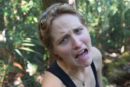 Lindsay crying because we don’t have enough water to safely continue. Hiking back up Bukit Terisek