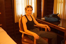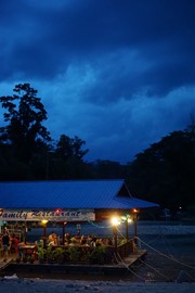 We decided to hide out from the jungle heat for the rest of the day, and chill in our resort AC. We booked a Night Walk for the evening, and headed across the river for dinner at one of the floating restaurants in the village. As we were finishing dinner, rain clouds started to roll in, and since we didn’t feel like walking in the rain, we postponed our night walk for another day. Whatever – we earned the right to be a bit lazy.