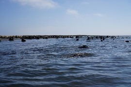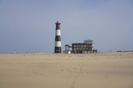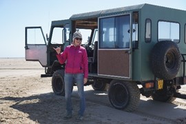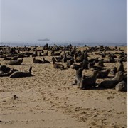 As we drive past the Pelican Point Lighthouse, we see a jackal eating a dead seal cub – since there are no Great Whites in these waters (the cold Bengula Current is too chilly for the sharks, which prefer the warmer waters of the Agulhas Current in South Africa) the seals have no natural predators so the bay is overpopulated, to the point where there isn’t enough fish to sustain the population. As a result, jackals pick off cubs that are too weak.