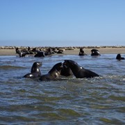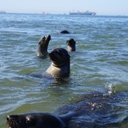 Igor arranged a kayaking tour with Pelican Point Kayaking, which allows you to get up close and personal with the 50K+ Cape Fur Seals which live on the peninsula. While the seals were very shy on land, once we were in the water, they were incredibly playful. Our guide encouraged us to interact with the seals, saying the more we engage with them – by rowing, talking and moving our paddles near them – the more they would engage with us. He even said we could go ahead a pet them if we liked! “Just use you good judgement – if they look bitey, don’t pet them.” Gotta love Africa!