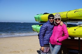 When we woke up in the morning and looked out our hotel window, we saw a thick blanket of fog covering the bay. We started to get really bummed out, as we were planning to spend the morning on the water kayaking. However, during breakfast we noticed the fog burning off really quickly, giving us perfect visibility by the time our tour picked us up in front of the guesthouse.