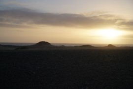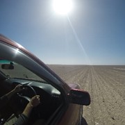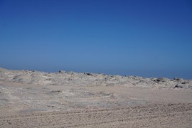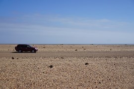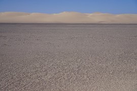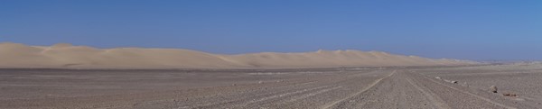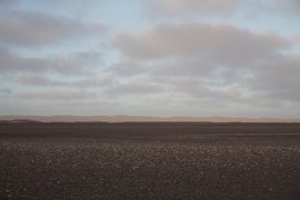 After several hours of flat gravel, large sand dunes show un the horizon!