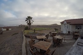 We had a 6-hour drive ahead of us, so after an early breakfast we said farewell to Swakopmund and headed north along the “Skeleton Coast”. Most tourist circuits only drive halfway up the coast before turning east toward Etosha National Park, but we were going all the way to the of the line to Terrace Bay.
