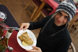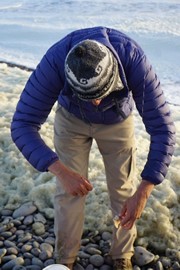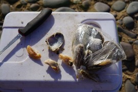Daniel – a local fisherman & handyman – took us out to the shore and gave Igor an introductory lesson in angling. He uses chuncks of frozen mussels tied to the hook as bait.