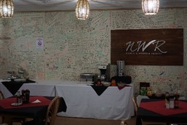 Tourist graffiti covered every inch of the wall in the Terrace Bay Restaurant