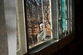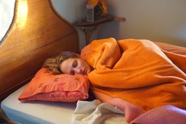 Lindsay catching a few z’s in her twin bed, before a Hornbill starts knocking on the window, looking for breakfast