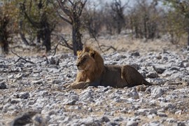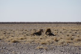 Like the rest of Namibia, Etosha has very little water, especially now during the dry season. The big draws in Etosha are the various waterholes (both natural and manmade) where the animals go to drink up. So we would drive to each waterhole, park our car, and basically have a stake-out, waiting for the animals to arrive. The previous renter of our CRV had left a detailed map of Etosha in the glove compartment, pointing out which holes are known for certain animals, so we drove off in search of cool stuff: lions, elephants and leopards!