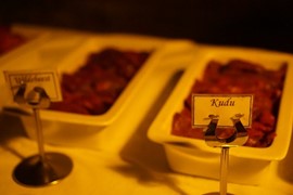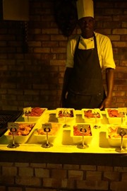 The dinner buffet was AMAZING! The chef has a selection of meats – including African game like Kudu, Wildebeest, Eland and Zebra – for you to choose from! Gee, we didn’t realize the game drive in the park was our menu…