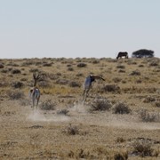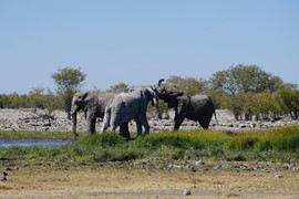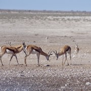 Since the lion chased off all the antelope from the Okondeka Waterhole, we started the car and headed back toward the center of the park to check out all the waterholes that had a reputation for leopards. Still no luck, but we did find some very scenic spots with lots of playful animals (clearly no predators were nearby).