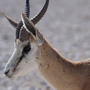 A Springbok mid-spring, two Springboks fighting, and a close-up of a Springbok.