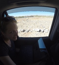 I have a view of elephants fighting next to an African waterhole as I type up my travel blog. Not bad for my temporary “office”!