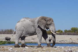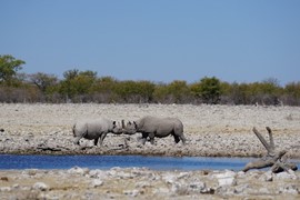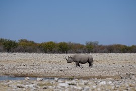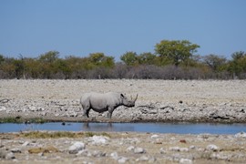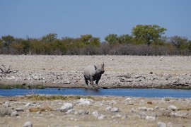 Wait, who just showed up to the waterhole? A RHINO! One of the most endangered species in all of Africa, wow!