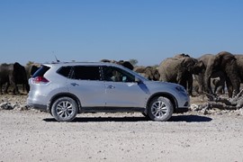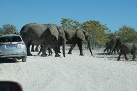 It’s too late to back up! There are *literally* dozens of elephants in front of and behind our car!