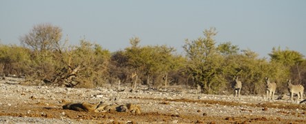 Poor zebras – they want to get a drink of water, but the sleeping lions are blocking the waterhole