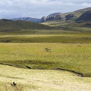 A jade path of water cuts through the yellowing grass of the Reed “Lake” swampland