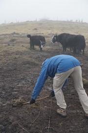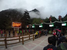 We knew that Jiuzhaigou was going to be overcrowded from the get-go – it is, after all, China’s 2nd most visited park (we’ll be going to the #1 park next week!). Igor had read horror-stories about hours-long waits at the ticket counter, so we decided to leave the hotel at 6:30AM so that we could reach the ticket office before it opened. We had arranged for a packed breakfast the night before, and hurried out the door before giving ourselves time to consider the weather. By the time we reached the park entrance (which was a good 30min walk – NOT the 1KM that the receptionist had told us!), we realized it was a mistake to start our day without our hats and jackets, so we were forced to split up. Igor waited in line for our tickets (which ended up being pretty short, even with Chinese tourists egregiously cutting), while Lindsay caught a cab back to the hotel to grab our warm clothes. We ended up entering the park just after 7AM, which ended up being a good thing as the hordes of tour groups had already departed.