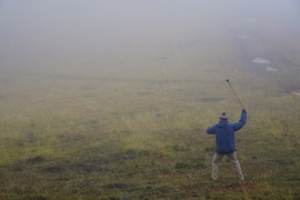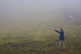 Foggy clouds hide the mountains and misty dew covers the “old man’s beard”