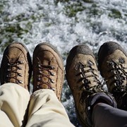 A couple of boots at the Pearl Shoal – a huge, bubbling cascade at the center of the park.