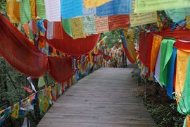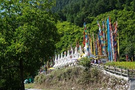 “Jiuzhaigou” translates to “Nine Village Valley” in Tibetan – in the small Shuzheng Village, nine prayer-flag strewn stupas represent the original villages of the park’s namesake