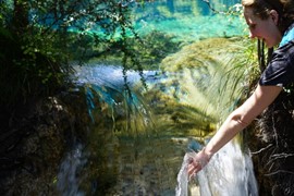 Despite the “No Touching!” sign, Lindsay can’t help but run her fingers through the crystal-clear water