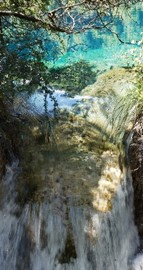 Panda Falls and the Multicolored Lake, in Jiuzhaigou National Park