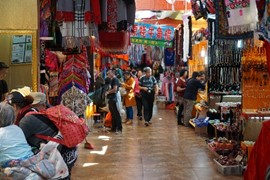We stayed on the bus after it dropped off its passengers at the entrance, and rode back up to Nuorilang, where we had to transfer to a separate bus. This was when our visit to Jiuzhaigou reverted back to “mass tourism” mayhem. The park officials decided, in their infinite wisdom, to put the transfer bus on the other side of the park restaurant and souvenir shops, rather than right next to the main shuttle stop – thereby forcing tourists to meander through stalls of junk and hordes of other visitors. We were pretty rattled by the time we got on the bus, but we were able to get seats, so that seemed like a plus.
