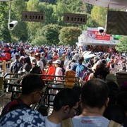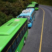 A line of buses wait to return us to the park exit, which is now overrun with *thousands* of tourists