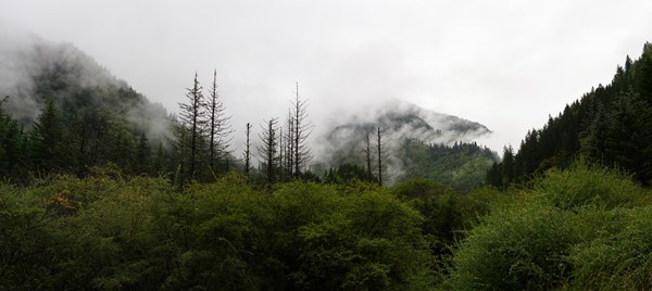 A cloudy, rainy day in Jiuzhaigou National Park