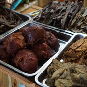 Walking back to the hotel along the river, Igor sees the gorgeous blue water from the park converge with the dirty brown run-off from the village. So goes any sense of serenity as he too is washed up in a flow of tourists, squeezing through the stuffy, smelly souvenir stalls that surround the exit. Seriously – not sure what animal all the jerky was from, but it smelled awful.