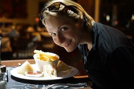 Sunday is a complete wash, as it rains the entire day. We stay indoors, trying to be productive on our computers. We finally get cabin fever around dinner time, and brave the weather with the hotel’s umbrella in search of food. After walking back and forth along the river for half an hour, we finally find the White Star Café, a highly rated restaurant that has an English-language menu. Not the most spectacular dinner on our trip, but it was the highlight of our day just to get out of the hotel.