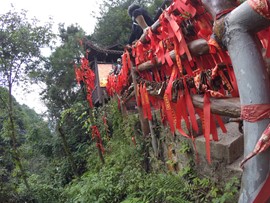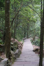 We had piss-poor weather on our final day in Jiuzhaigou, but we put on our ponchos and tramped out into the rain anyways. We got through the park gates just after opening, and rushed up to the “Primeval Forest” – the section of the park we had missed the first day. We soon discovered that our strategy of, “be the first ones in and walk down to the exit” didn’t really work as the park had closed the trail connecting the Primeval Forest to the Arrow Bamboo Lake! We weren’t sure if it was only closed today or if it had been closed our first day as well. In any case, we were forced to get back on the shuttle bus and resume our hike at the same spot where we had started on Friday. At this point, we had lost the edge the early morning would have given us, plus the crowds of tourists were even slower and more difficult to pass today due to the copious amounts of umbrellas. Even when the rain had stopped, the Chinese kept their umbrellas open creating a “great wall” of multicolored cloth and wire that we couldn’t penetrate!