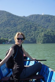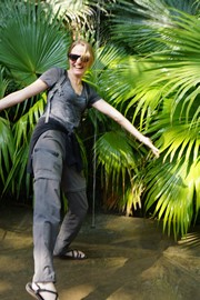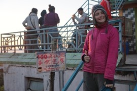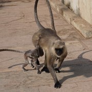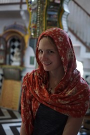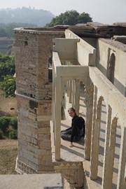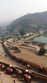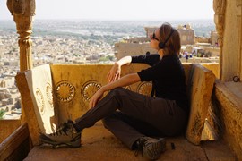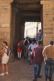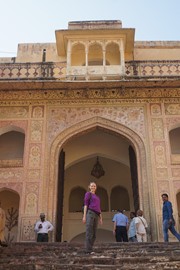 Lindsay the Leo climbs the stairs to the Singh Pol (Lion Gate) to enter the Amber Fort