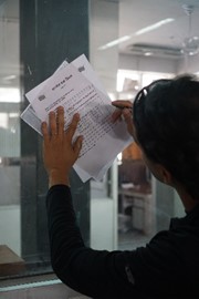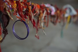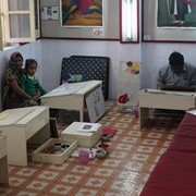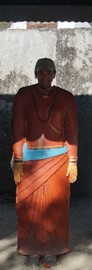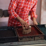 For multi-colored designs, several stamp-like teak-wood blocks are dipped into paint, then carefully placed over each other to create a layered effect. After the design in finished, it is laid out in the sunshine to set for a few days, then washed twice to make sure the color doesn’t run