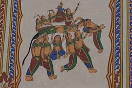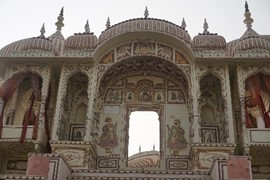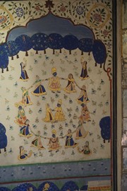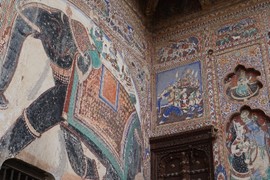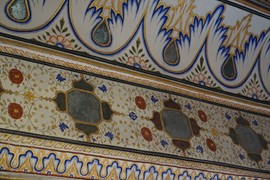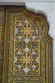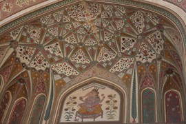 Stunning frescos decorate the Ganesh Pol – the paint on the outside is made from plant-based dyes, while the interior uses mineral-based colors, including real gold-leaf