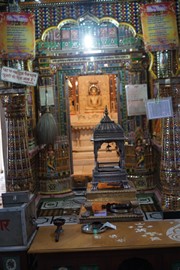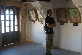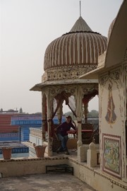 Our final monument of the day was the Jaipur City Palace. We’ve seen quite a few “city palaces” at this point, so I’m sorry to say we were getting a little bored. There was a museum section (no pictures allowed) where a HUGE set of pajamas was on display, belonging to a Rajput king who ruled in the mid-1700s – the guy was 550+lbs, so…yeah…kinda funny as the PJs were enormous. To us, the most interesting part of the Jaipur City Palace was the “Friends of the Museum” artist bazaar on the premises. These artists are descendants of royal artists who used to make a living off commissions from the Rajput kings. Once India gained independence, the Rajput royals lost their royal titles and no longer had the wealth to patron dozens of artists. In an attempt to continue the livelihood & artistic tradition of these painters, weavers and jewelry-makers, the Indian government subsidizes their work and allows them to use the City Palace as a studio, rent-free.
