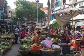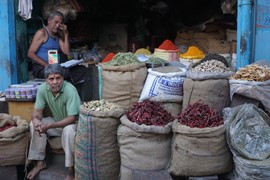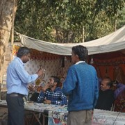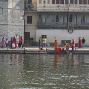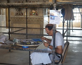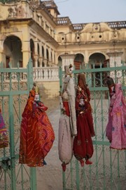 We passed another drive-by attraction – the Water Palace – on our way to visit an artisan workshop where traditional block-print fabrics are made. The shop manager was really great – not only did he give us a demo of his craft, he also let us try out the block-print technique. He then took us for a tour of his showroom and taught us how to distinguish real, handmade block-print work from mass-produced screen-print knock-offs (it’s interesting – the machine-made fabrics have “imperfections” deliberately added to make them look “authentic”).