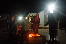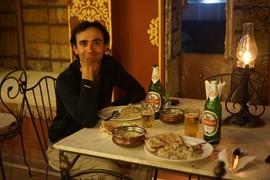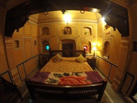 Dinner & cocktails on the rooftop bar of the Traditional Haveli hotel in Jaipur