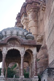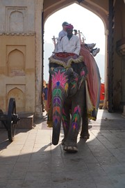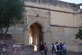 There are two ways to enter the fort – driving up to the Suraj Pol (Sun Gate) and entering on foot, or taking an elephant ride up the back gateway. While our tour included the elephant ride, we decided to pass – we’ve been reading a lot of disturbing reviews about animal abuse, particularly with elephant rides in Asia. True, these elephants looked pretty healthy (some of them were quite stunning, with brightly colored body paint!), but we hadn’t done any research on this operator so didn’t want to risk supporting inhumane practices.