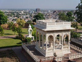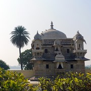 The beautifully painted Ganesh Pol (a gate dedicated to the protective Hindu god, Ganesha), and the serene lake-oasis of Kesar Kyari (Saffron Garden)