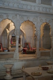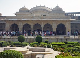 The amber sandstone exterior meets up with pristine, white marble inside the Diwan-i-Aam (Public Audience Hall) – even though the Rajput maharajas were Hindu, the pillar designs show a blending of cultures: elephants (a Hindu sign of prosperity) holding lotus flowers crown the top while elegant flowers (a popular motif in Islamic art) decorate the base