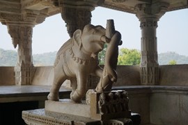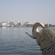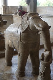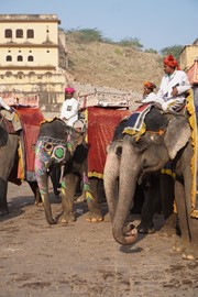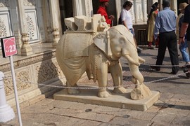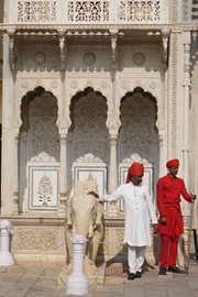 Marble elephants (each carved from a single block of white marble) guard the entrance gate to the Jaipur City Palace