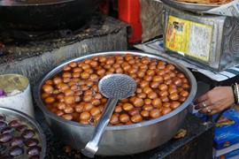Now *that’s* a big wok! Dude, how many people did this king invite over for dinner? You could feed an entire village with the amount of food that would fit in there (although on second thought, Indian weddings do tend to have a high head count – good thing the guy actually had TWO of these in the palace courtyard!) – needless to say, Lindsay and Igor had a much more modest (but delicious!) lunch that afternoon