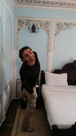 Igor is super excited to be in our cozy, air-conditioned haveli hotel
