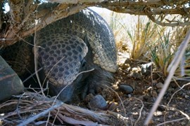 ARMADILLO! Lindsay spots this slow little guy waddling through the brush on the other side of the street while we are pulled over for lunch. He is SO SLOW she is easily able to chase him down for a super-duper close-up when he hides under a bush. SO CUTE!