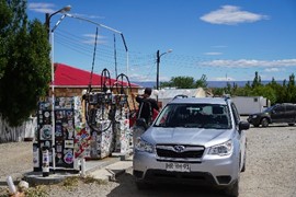 When we reached the small town of Tres Lagos, we asked the gas station attendant where the nearest repair shop was, and were disappointed to hear that our best bet was to continue all the way down to El Calafate – the southern gateway to Glacier National Park. We had originally planned to visit El Chalten on the northern end of the park first to see Mt. Fitzroy, but the gas station guy said the town was too small. Boo. We might double back after fixing the tire, but more likely than not we would have to skip it.